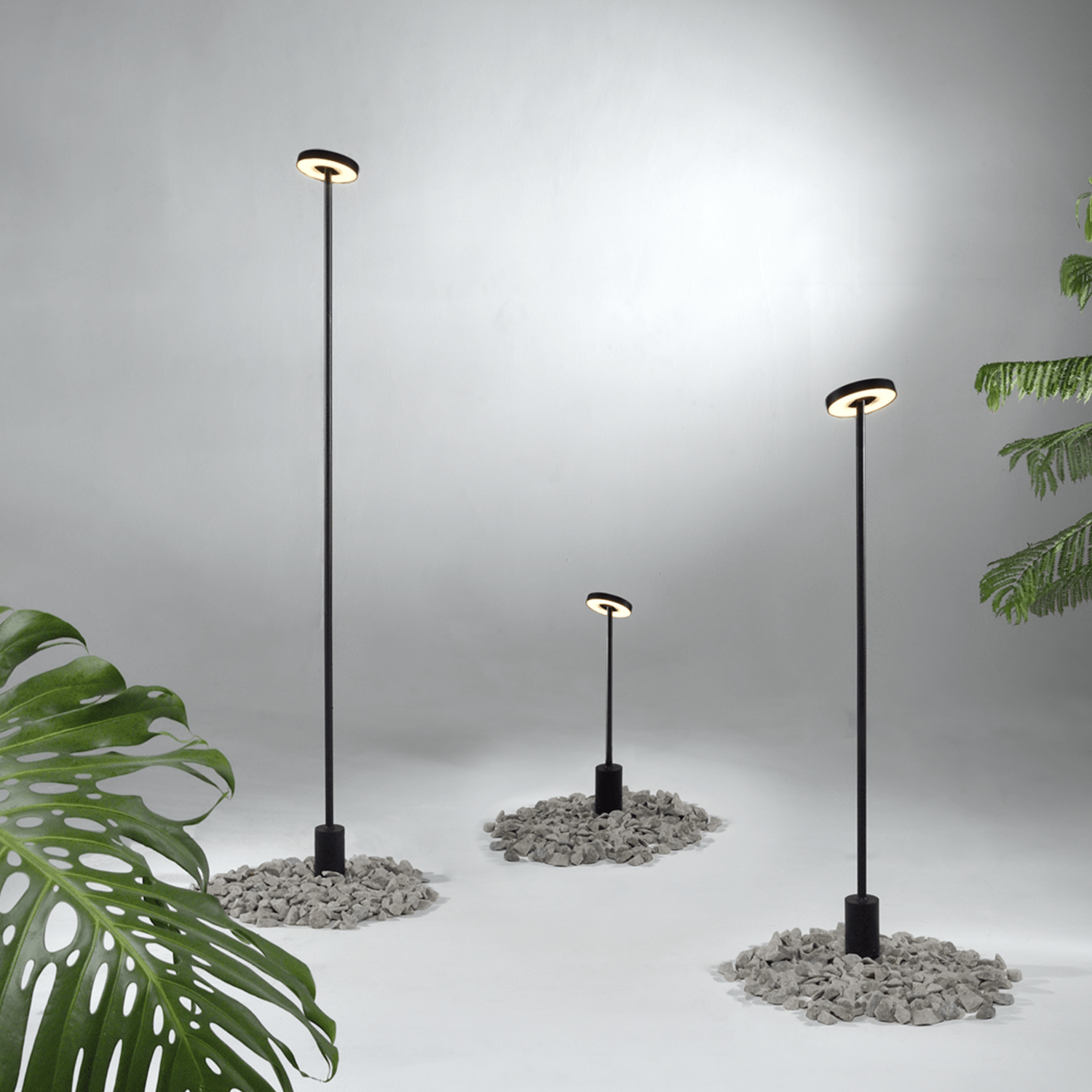 Con estructuras cilindricas alargadas y liviana, estas luminarias ofrecen un movimiento de 100° y permiten ajustas su altura mediante varillas roscadas dando la opción de tener 3 alturas. El acabado negro resalta su carácter invisible, enfocando la atención en la luz que emana.